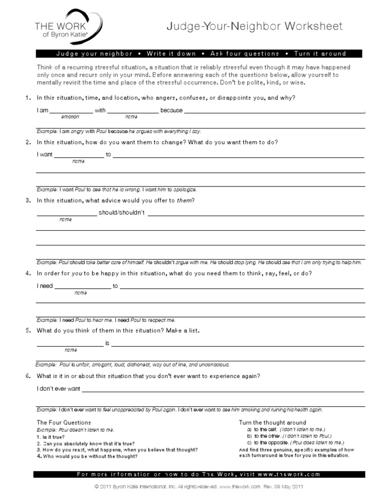 ByronKatie Judge Your Neighbor Worksheet PDF Thought Anger