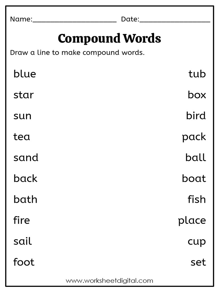 Spell correctly common words and relevant key words for work and special interest. These worksheets ask your kids to form common compound words in different ways and to dissect compound words into their components. Pan + cake = pancake rain + bow = rainbow.