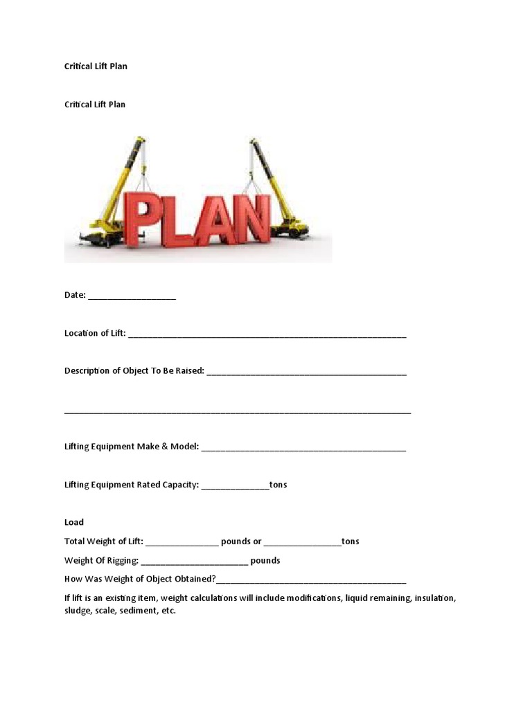 Critical Lift Plan Template