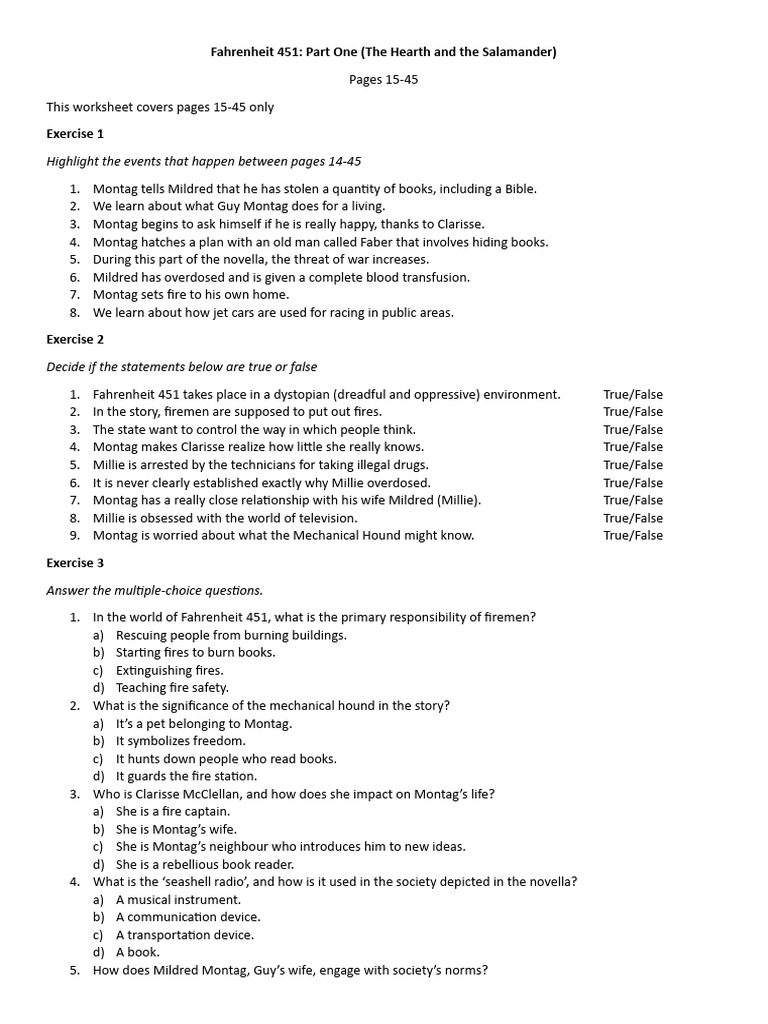 It depicts a future american society that prohibits. Free fahrenheit 451 study unit worksheets for teachers to print. Fahrenheit 451 is a dystopian novel published in 1953 by american author ray bradbury. Our fahrenheit 451 worksheets offer an engaging and insightful exploration of ray bradbury’s classic novel, providing students with the tools they need.