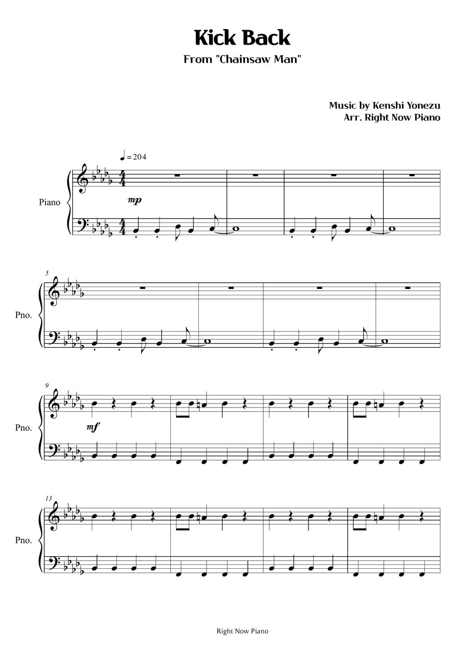 partituras de Kenshi Yonezu "Kick Back" Piano Jellynote
