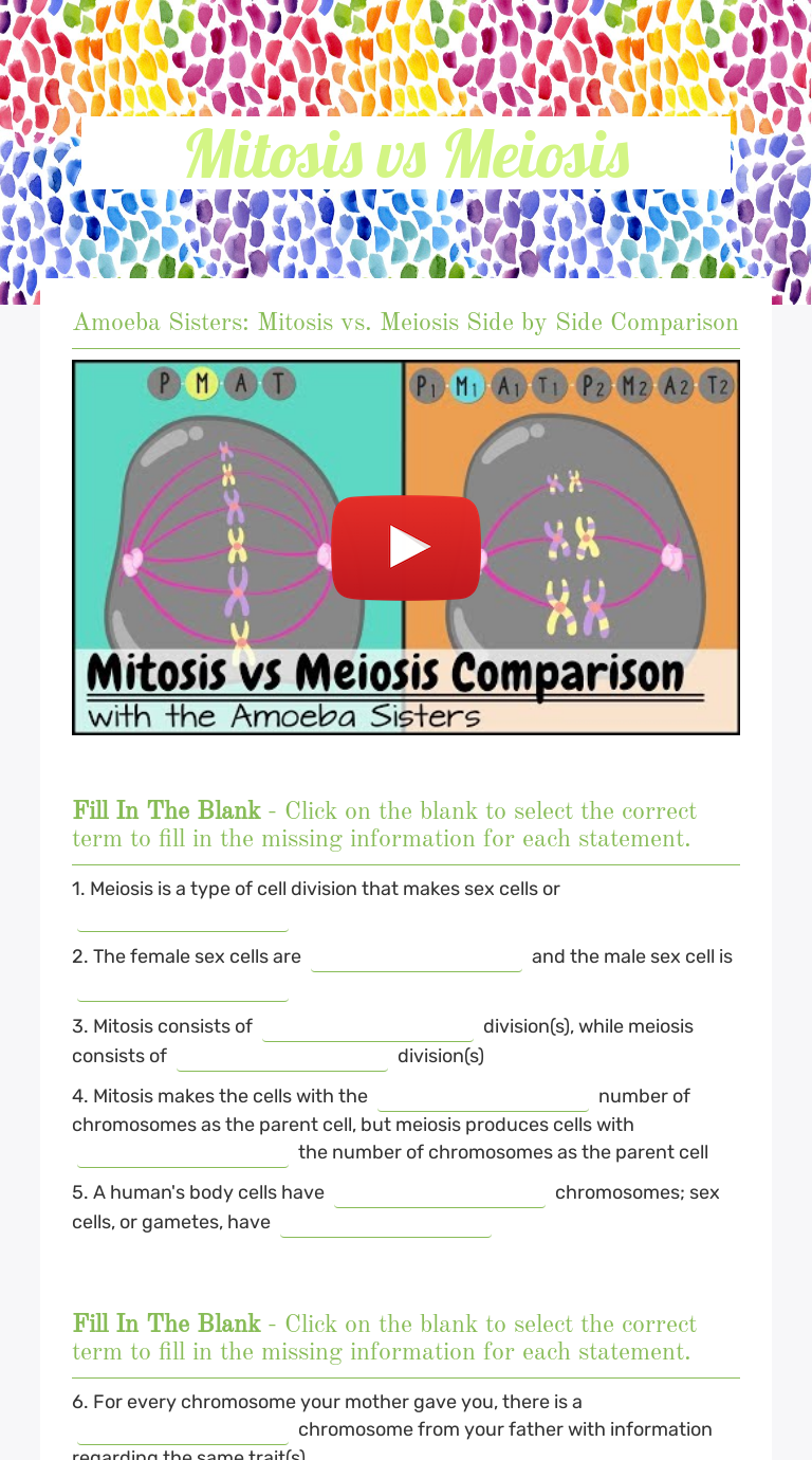 Mitosis vs Meiosis Interactive Worksheet by Gloria Hernandez Scipio