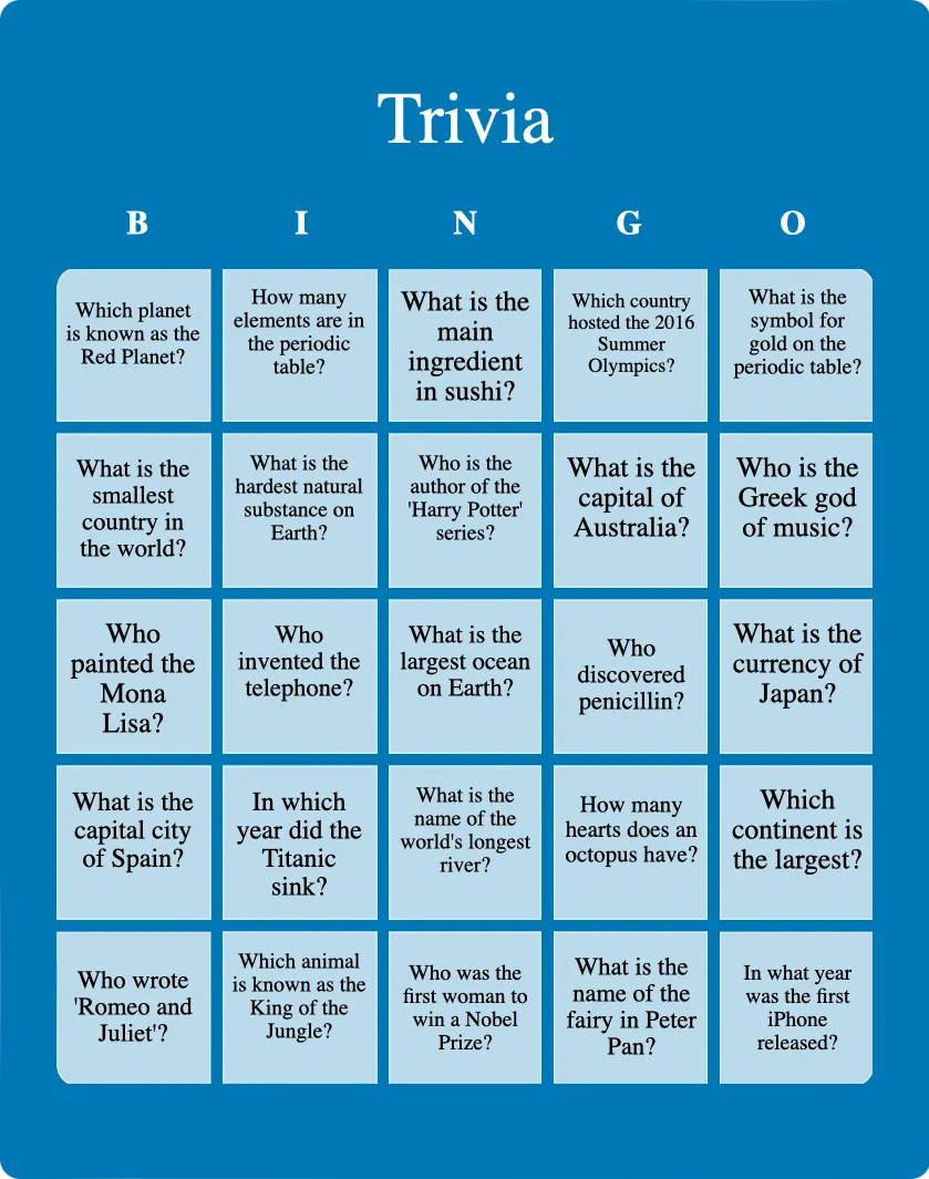 Trivia Bingo Printable & Customizable Bingo Card Creator