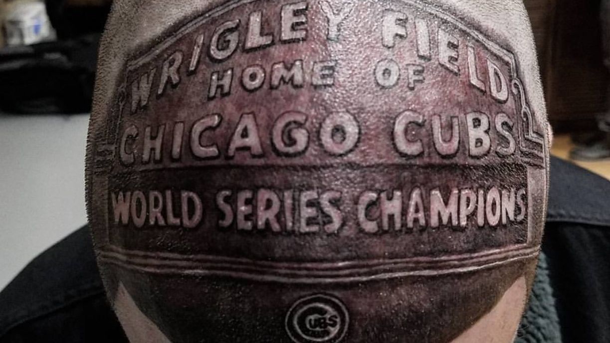 Chicago Cubs fan gets Wrigley Field marquee tattoo on head